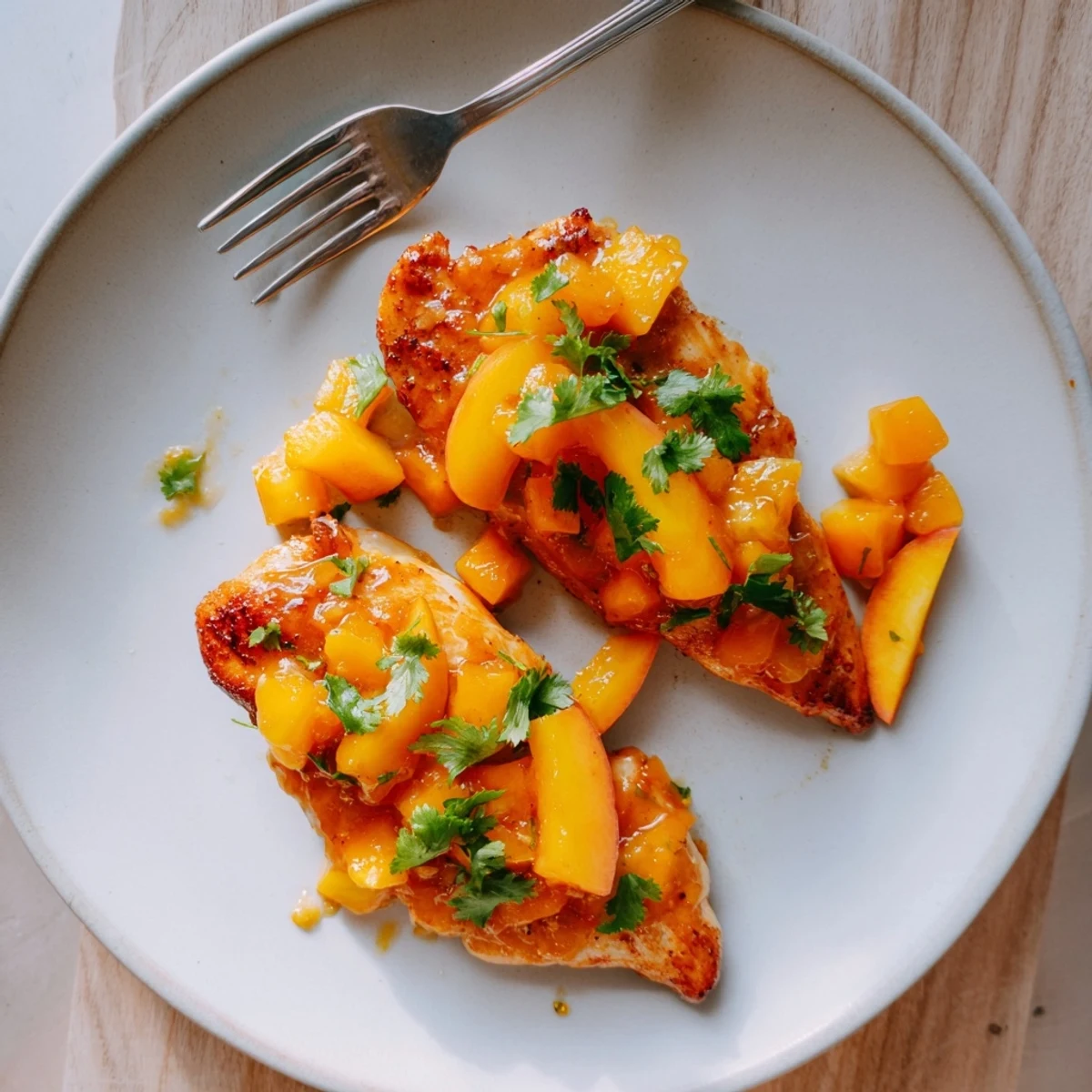 - Let the chicken rest for 2 to 3 minutes so the juices redistribute Top with extra sauce fresh peach slices and herbs right before serving